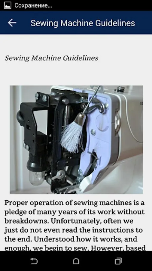 --- Приложение поможет вам отремонтировать вашу швейную машину, описание как чистить и смазывать вашу швейную машину