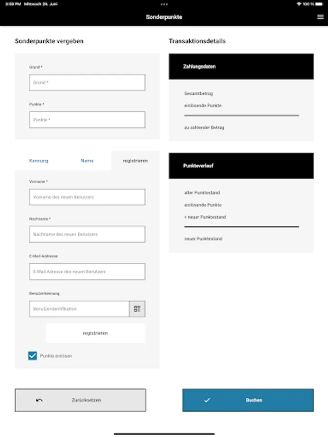 The central terminal app for participating in local voucher systems. The app provides retailers with all management functions in one place,