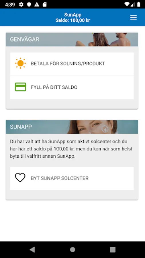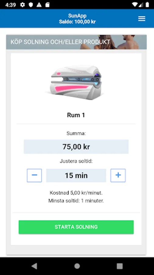 SunApp allows you to pay for your tanning directly from your account in our new app. You no longer need to bring coins or sun cards without you having access to your account anywhere. Load into your account and access your solarium's bonus!