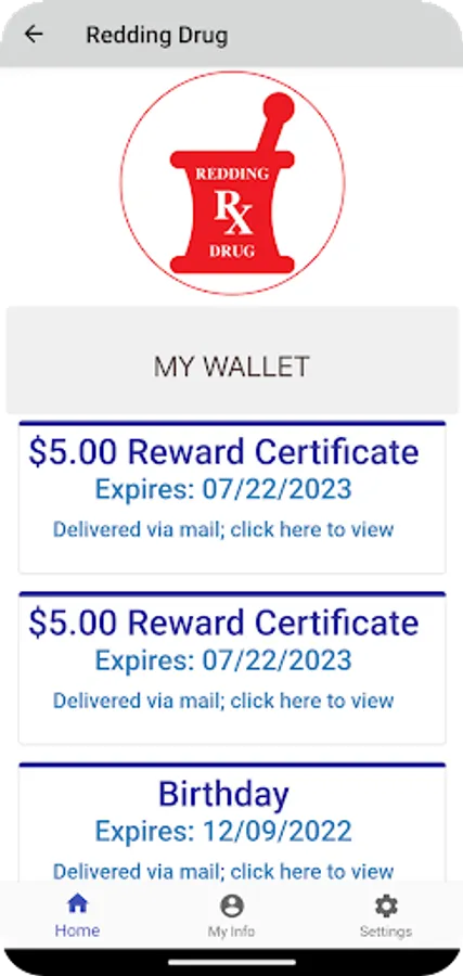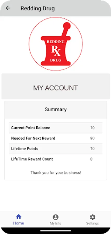 The Redding Drug mobile app delivers offers and loyalty information to on-the-go customers, giving quick access to exclusive deals, enrollment options, loyalty point balance and rewards lookup, loyalty program information, and information about our business-