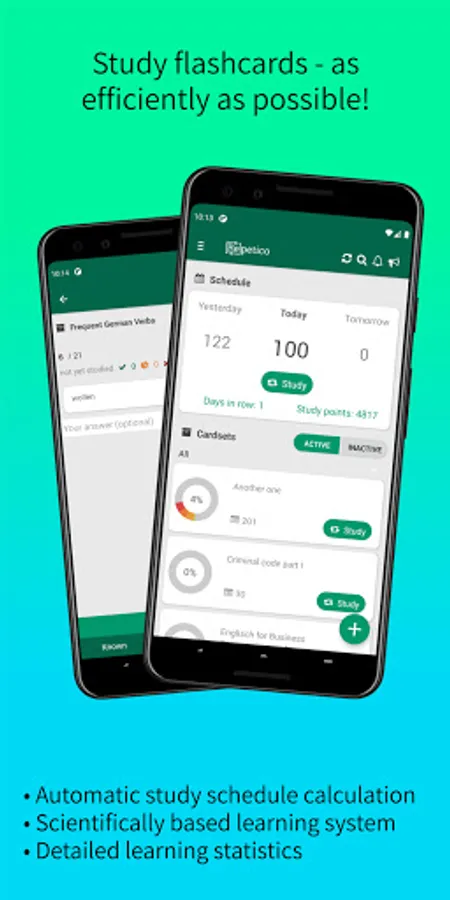 Repetico is a simple but very effective learning app that allows you to reliably store even large amounts of learning material in your long-term memory.