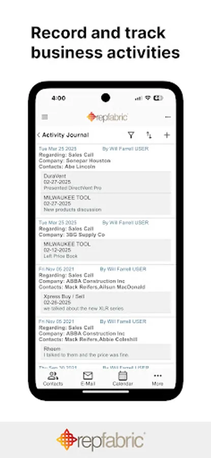 Repfabric is a cloud application that connects CRM, dashboards, reports, and your inbox to effectively communicate with your customers, manufacturers, and sales team. Providing simple and effective tools for email and reporting, Repfabric eliminates administrative “busywork” and gives you more time selling.