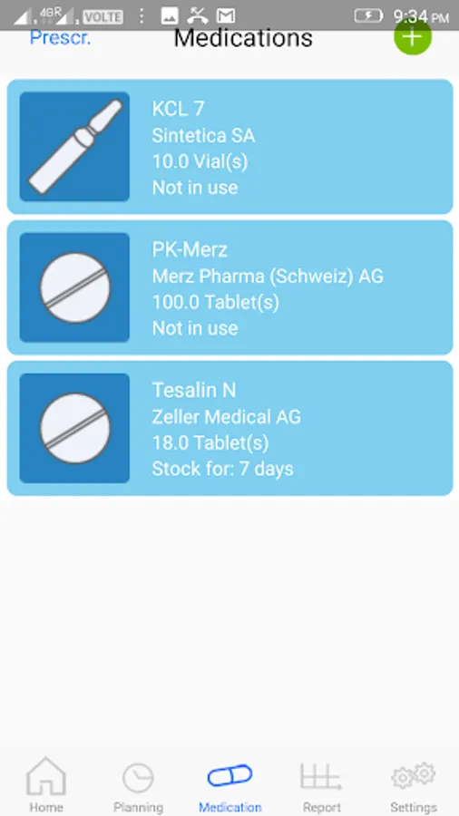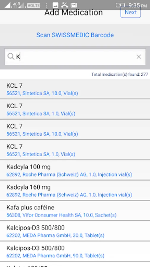 - You can scan the medicines using the barcode reader or select them from the integrated database using text input.