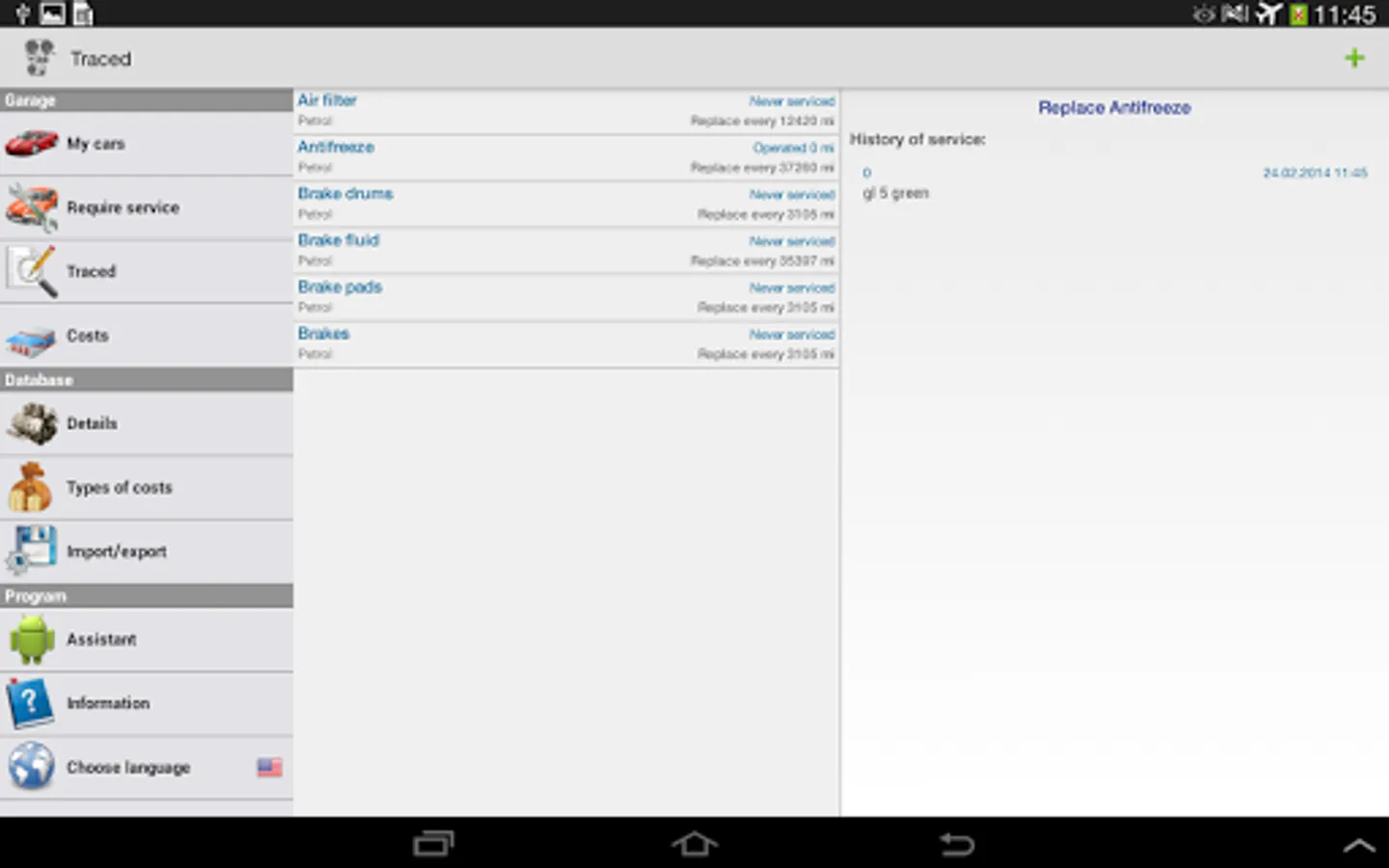 Application "Car service" done to help motorists. It will tell you if it's time to change the oil, brake pads and other consumable items or make their inspection.