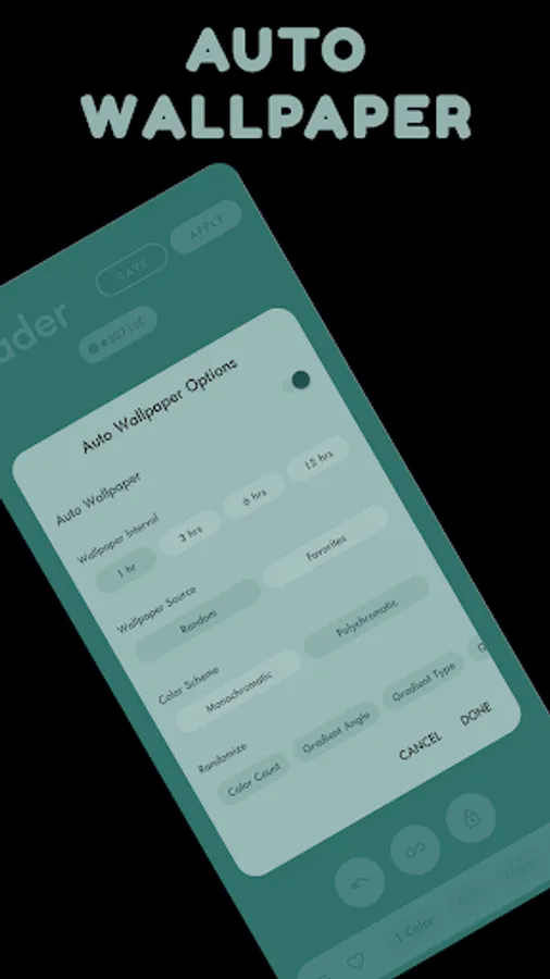 Create manually or generate randomly and apply colorful gradient and pattern wallpapers made easy with simple and intuitive UI.
