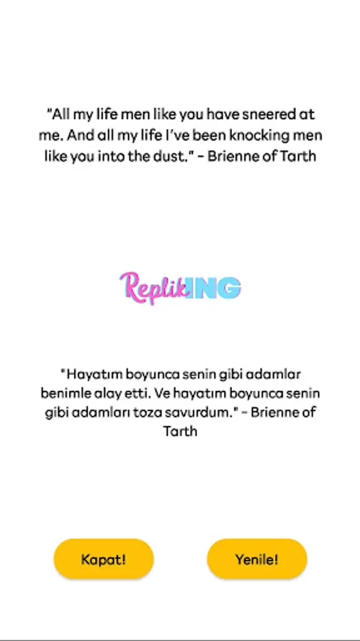 Compare the most popular lines of dozens of TV series such as Game of Thrones, Friends, Breaking Bad in English and Turkish, have fun and learn at the same time!