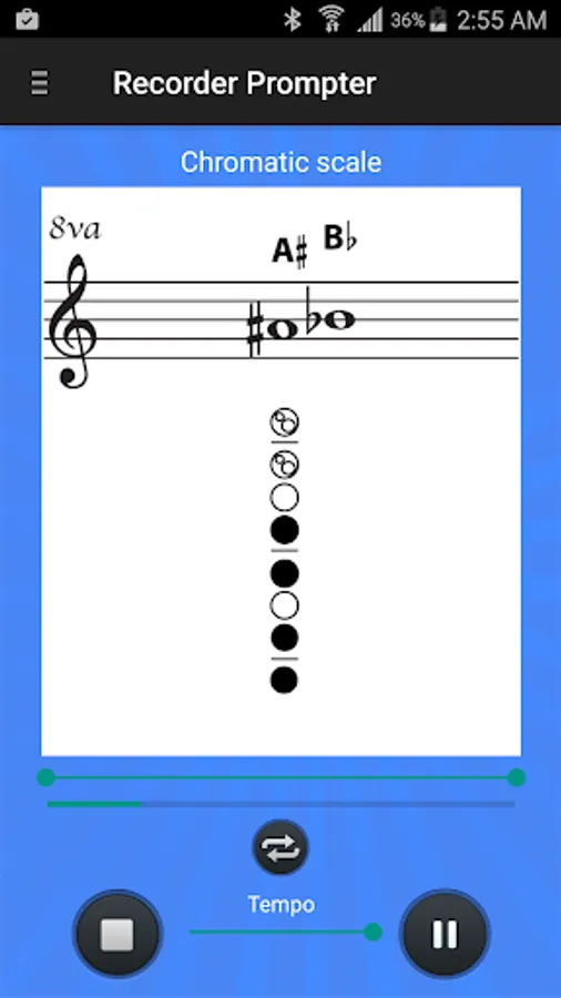 Recorder Prompter can automatically loop either a whole song or a section of a song, so you can highlight a passage you want to focus on and play it along with Recorder Prompter—over and over until you learn it perfectly!