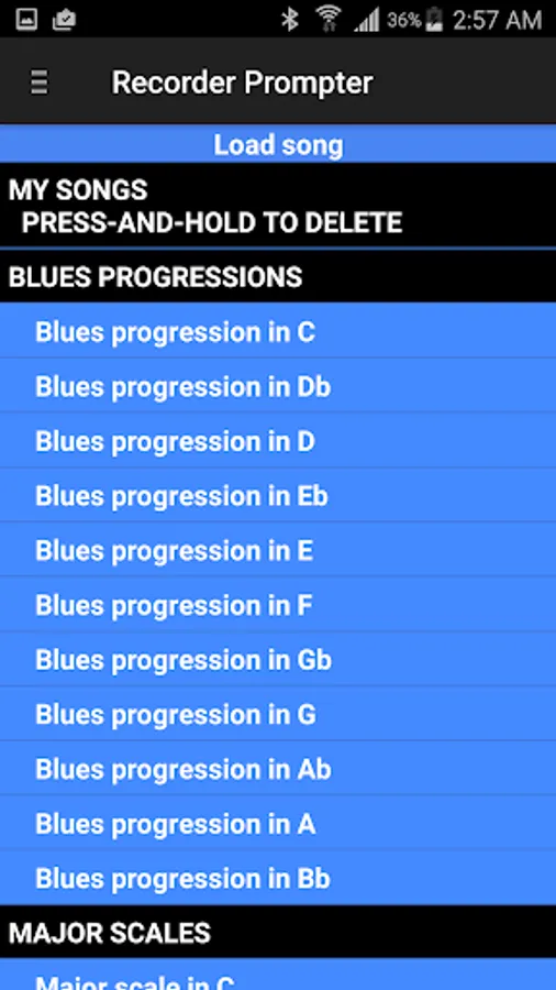 Recorder Prompter also remembers your per-song settings, so you can pop back into any song you’ve been practicing and Recorder Prompter will remember which section you were working on, what tempo you were playing at, which tracks you had muted—and of course whether you had looping turned on!