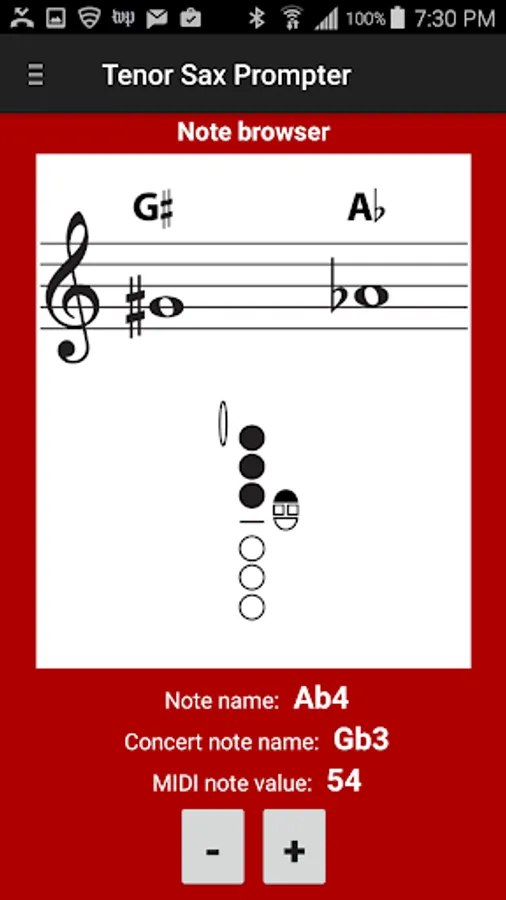 It's like a teleprompter for the saxophone: play the note fingerings shown on the screen to play along with the included scales--or import a song MIDI file from your e-mail or from a web site and see note fingerings for the tenor sax in real time as the song plays! Slow down any song to make it easier to play along with, and adjust the playback speed at any time!