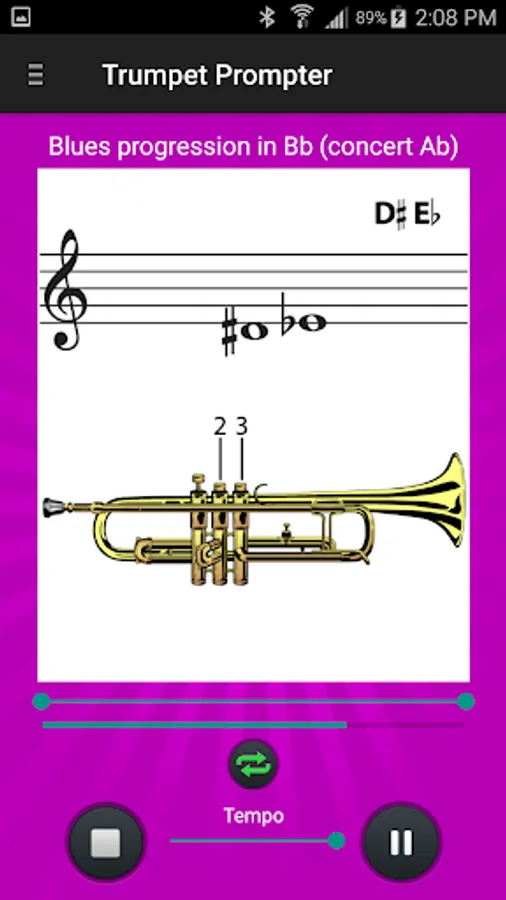 Trumpet Prompter can automatically loop either a whole song or a section of a song, so you can highlight a passage you want to focus on and play it along with Trumpet Prompter—over and over until you learn it perfectly!