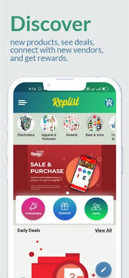 Replist buyers is the easiest platform to place orders, keep upto date with all the latest products, find companies and sales reps that service your area, keep invoice record, never miss an order again by getting order day reminders, provide your company with different payment methods, benefit from daily deals on time, get rewarded for placing orders. All this and more in a seamless way. Opened an account, it's free, and you can start connecting with all your sales reps from your vendors, and view their complete line of products. Optimizes how you fulfill your orders to an easy and faster way with your Replist buyers app. Using Replist as your main platform to fulfill orders will help you keep a closer relationship with your sales person and company.