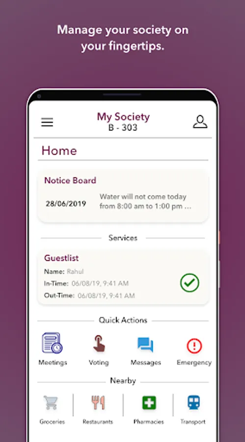 • Message other flat members: New in the society? Don’t have contact of your neighbour. Contact other members using our messaging service!