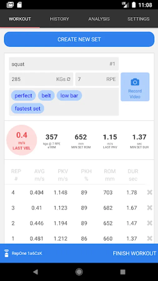 RepOne Personal connects to your RepOne 3D Motion Tracker to give you real time velocity feedback and help you train better.