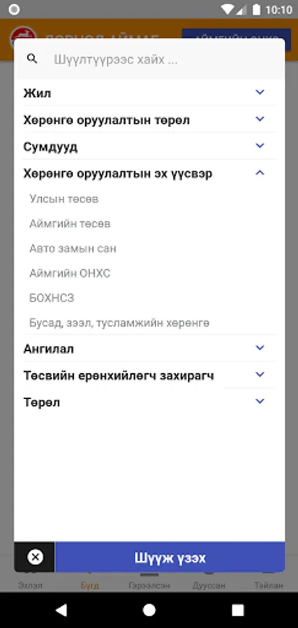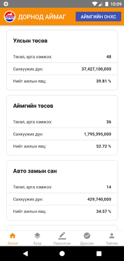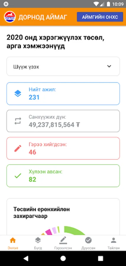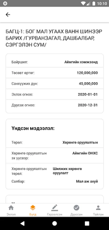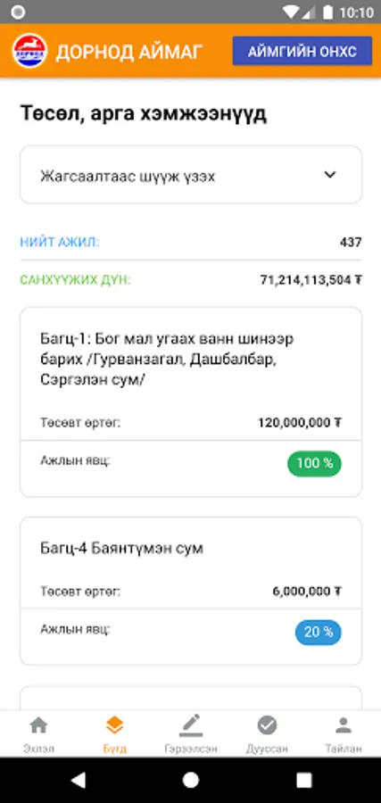 This system has been developed and put into operation in the aimag to present the state and provincial budget, road fund, onyx and boomsheets projects, activities, procurement information, contracts, financial information and progress information. There is also a system that can be monitored by FDL specialists in a report sent by project executors and monitoring engineers who can send timely reports.