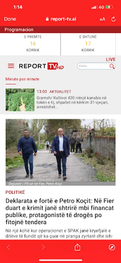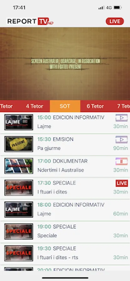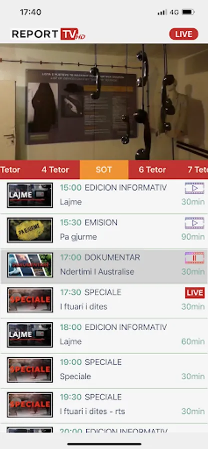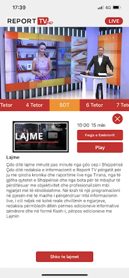 Aplikacioni Report TV lejon ndjekjen live të gjithë programacionit të televizionit me një cilësi video HD, që përshtatet automatikisht me cilësinë e lidhjes me internet të çdo smartphone në çdo cep të botës. Me teknokogjinë më të lartë mund të shohësh emisionet që ke humbur dhe ke akses në të gjitha lajmet tona online.