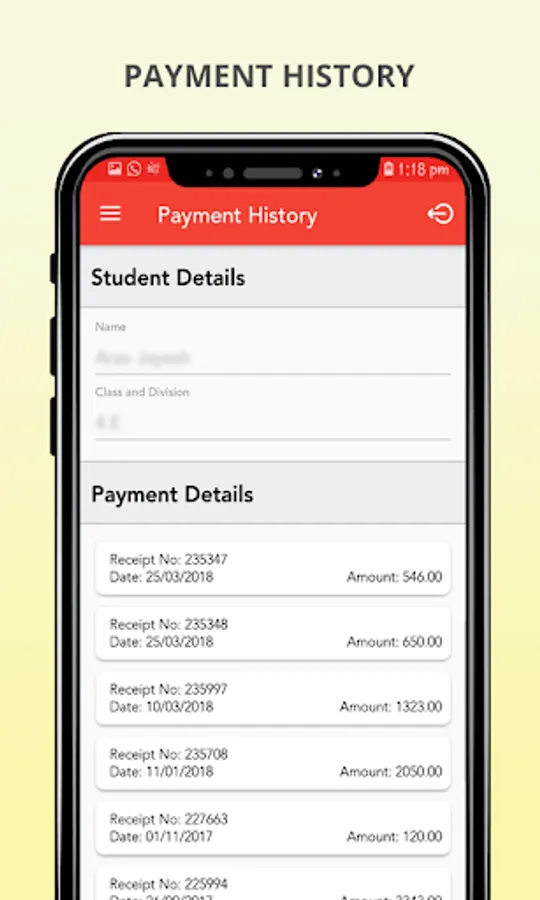 3. Time Table - The fixed time table for each class can be viewed through this option.