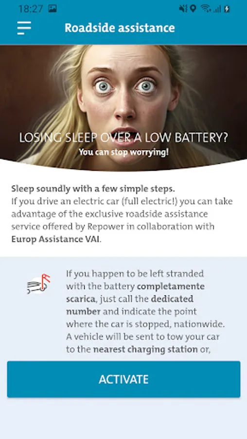 The Recharge Around roadside assistance service is exclusive to Repower in partnership with Europ Assistance VAI.