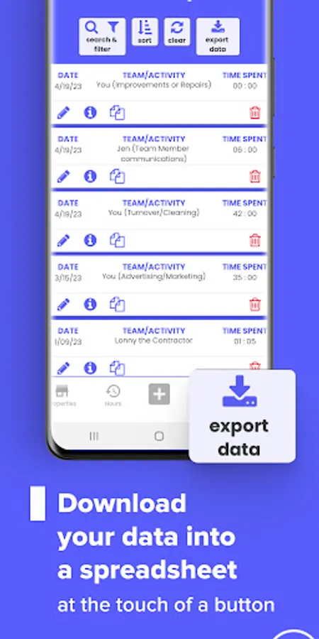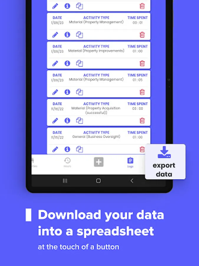 Need a hard copy backup? Download all your time entries at the touch of a button.