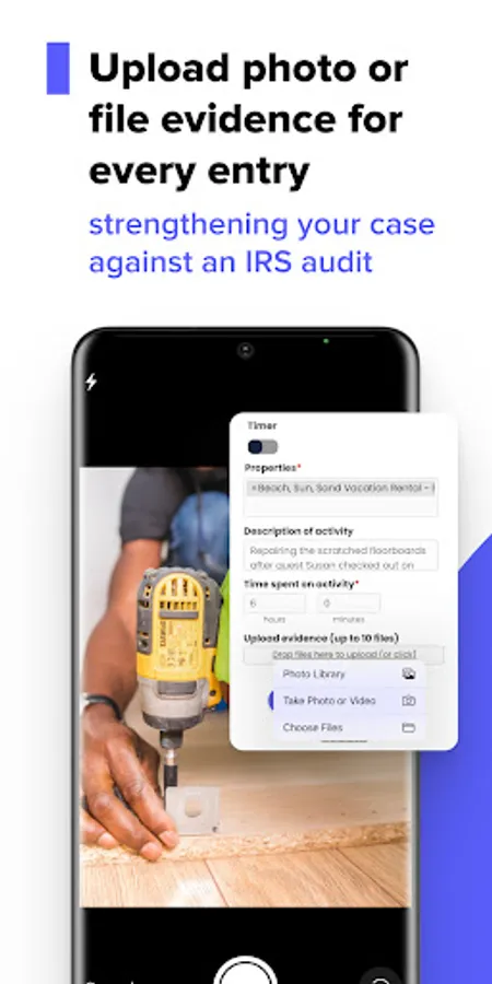 Upload supporting evidence for each of your time entries, protecting you in the case of future audits.