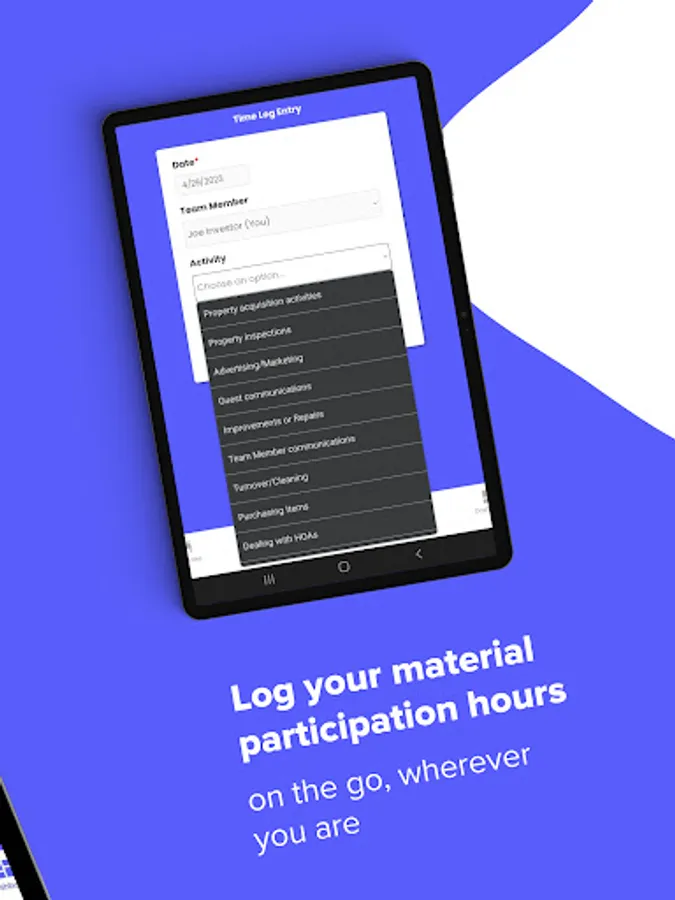 Whether you are a real estate investor for long term rentals or short term rentals, our app helps you qualify for either (or both) tax benefits