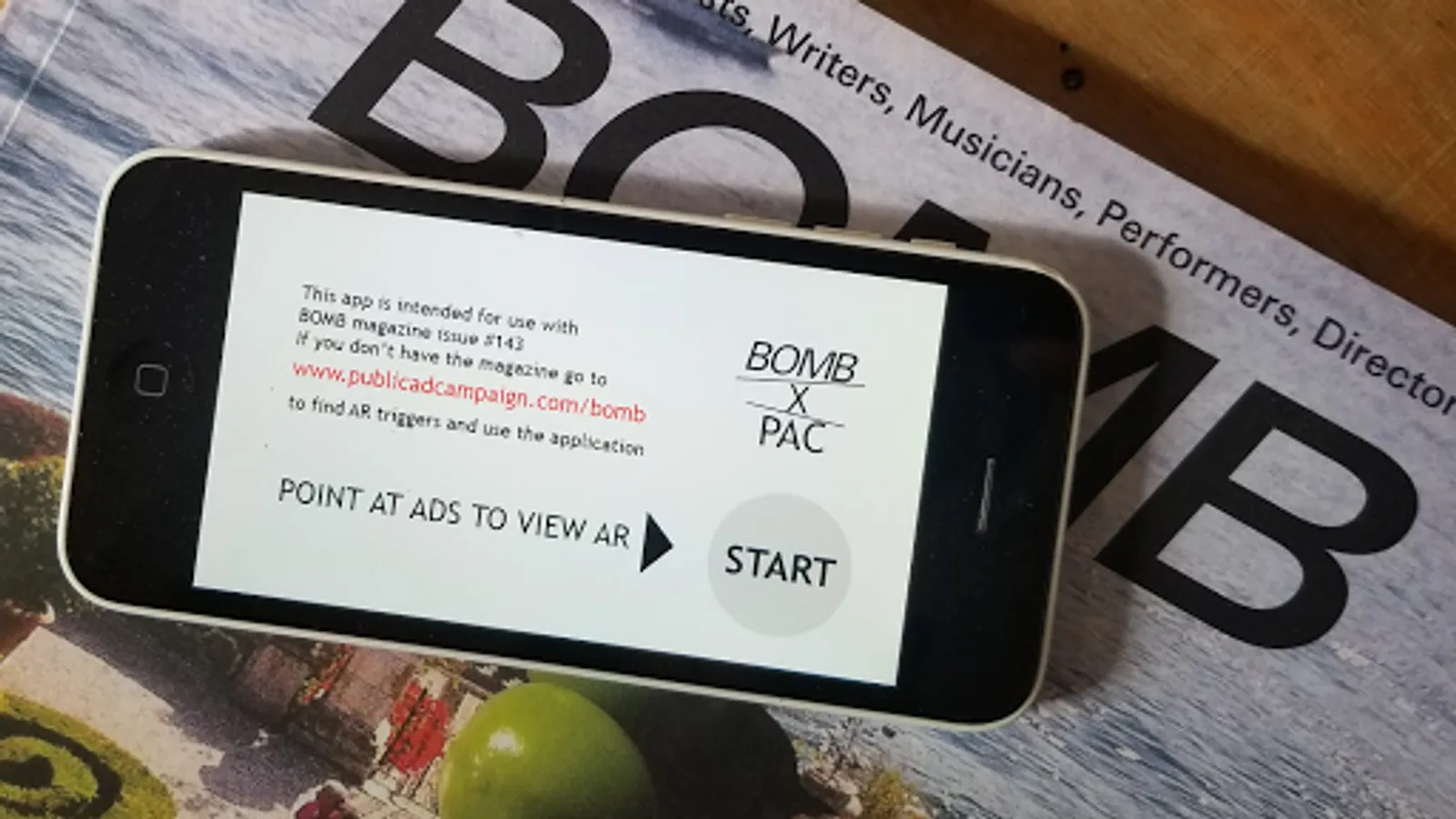 The PACxBOMB app is an experimental Augmented Reality dance project hidden within the advertising images of BOMB magazine issue 143.