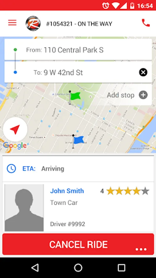 • Driver location and ETA