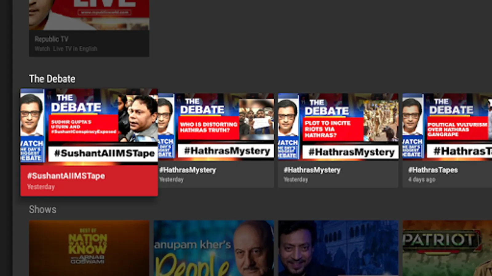 Republic TV is your one-stop destination for breaking news from India and around the world. The flagship channel of Republic Media Network is the first choice of millions of Indians, amplifying the voice of a billion, airing the news that is most relevant to them, investigating angles that need to be probed and not stopping in its unrelenting pursuit to get to the bottom of the stories that matter. Republic is independent.