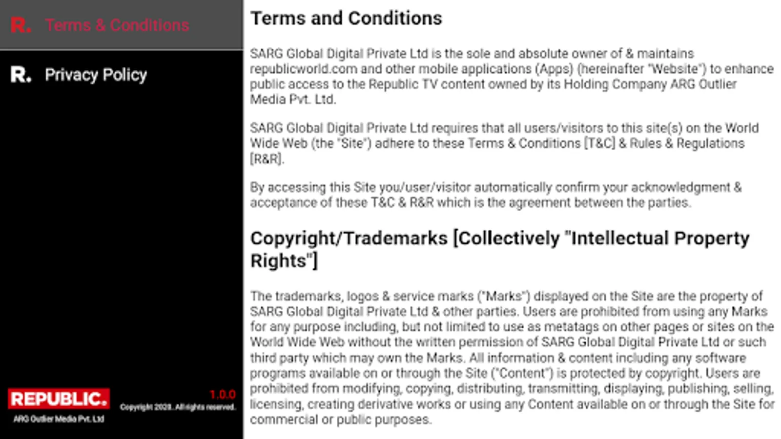 Republic is global. Republic is disruptive. Republic is your movement. On every screen, join us; be the revolution.Republic's Smart TV app makes news accessible for you at your convenience, at all times. At Republic we keep you updated with up-to-the-minute news on politics, sports, entertainment, lifestyle, gadgets and much more. Enjoy an Ad-Free high-quality news experience at your fingertips