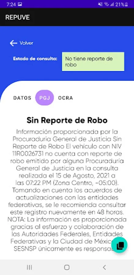 And the only way you have to verify your vehicle without taking it to the authorities is to make the citizen inquiry to REPUVE MÉXICO