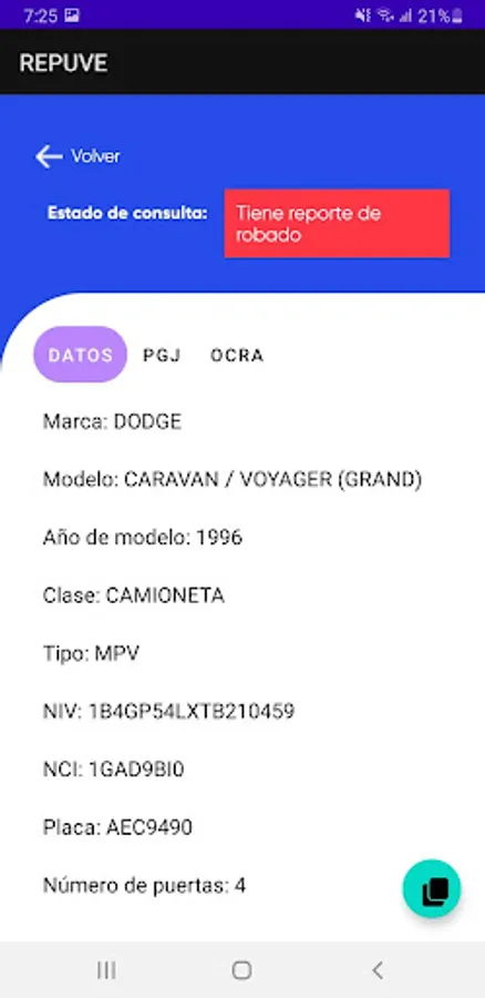 ✴ The information provided by the REPUVE application comes directly from consulting the data provided by the Public Vehicle Registry, which is publicly accessible and is only compiled for easy access by our system.