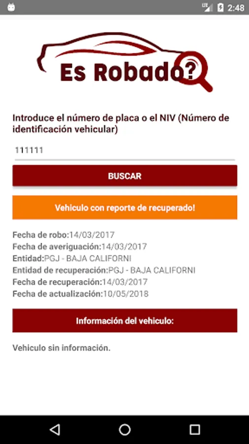 - The information presented does not guarantee that the vehicle will not be stolen, since it only shows the information registered with the REPUVE and not that of any other institution.
