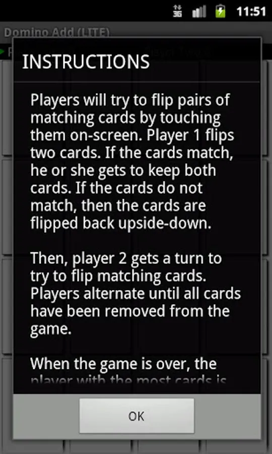 How it works: Each player will take turns flipping two cards. If the cards match, the player scores 1 point. Play alternates until all cards are matched. Player with most points wins!
