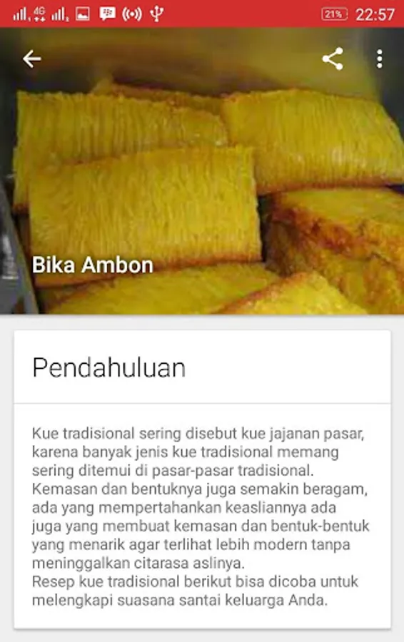 Complete Cake Recipe Assorted Application is perfect for those of you who want to learn to make various types of cake recipes, because in this offline cake recipe application the recipe collection is very complete with menus that categorize based on the type of cake recipe.