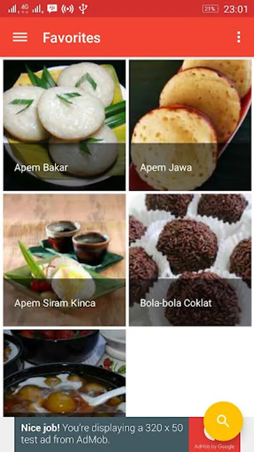 - Favorite menu to display a list of cake recipes that have been previously marked.