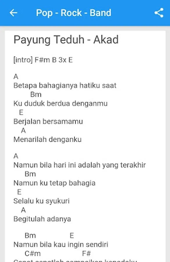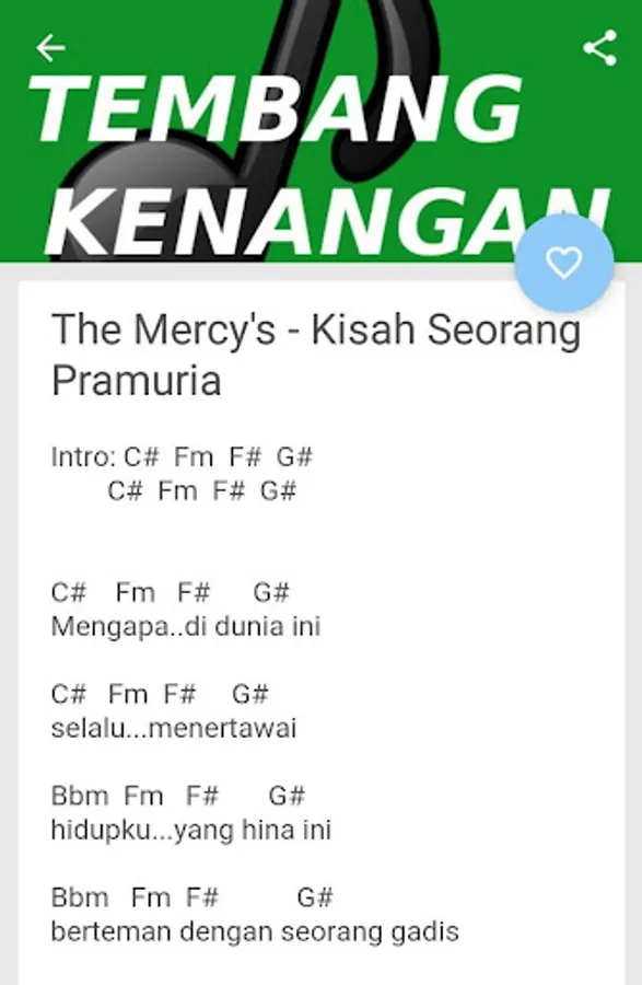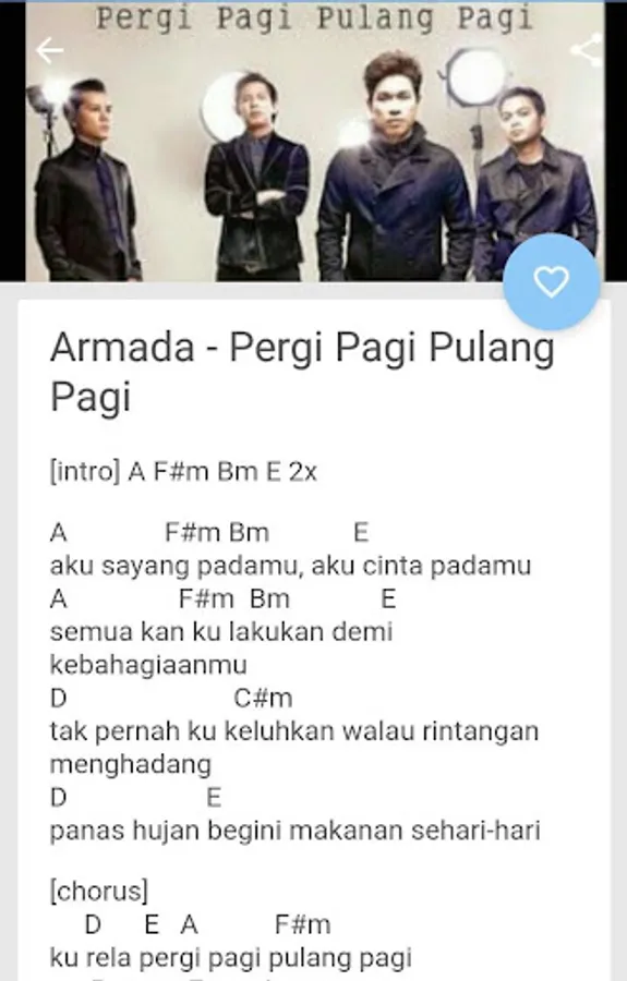 Now instead of having to browse whenever you want to find a guitar chords and lyrics, in this application we provide thousands of lyrics complete with guitar chords for your reference music playing.