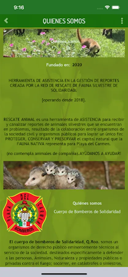 ANIMAL RESCUE is an ASSISTANCE tool to receive and channel reports of wild animals in trouble, the result of collaboration between civil society organizations and public organizations to achieve a single goal: PROTECT, CONSERVE AND PRESERVE the natural capital that NATIVE FAUNA represents. for Playa del Carmen.