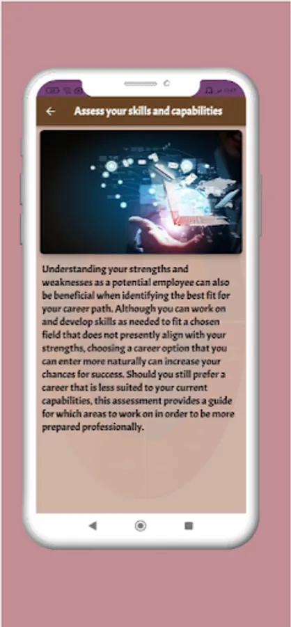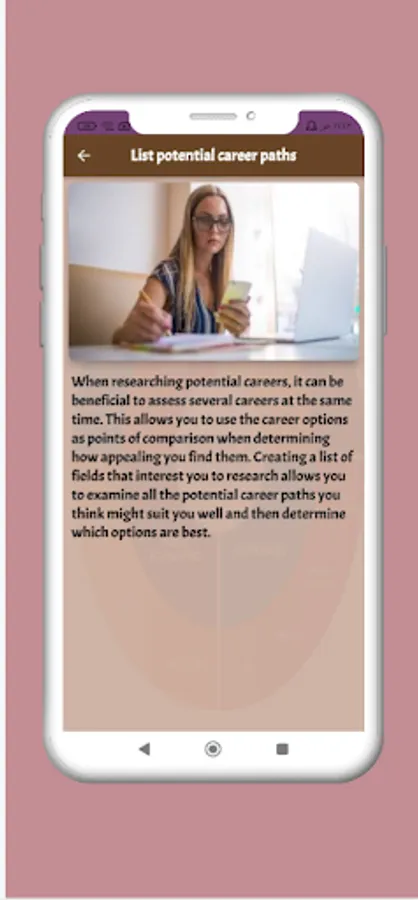 Our app will guide step by step and pave the way and help you through the ways to research your career. How to find right career path, our app will offer you all the right steps you should follow and will give you instructions, informations for each step.