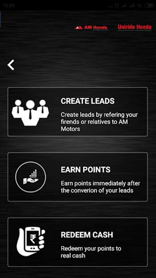Honda Referral Chum Application allows a reffered person to be an Agent of AM Honda and Uniride Honda. An Agent can provide references to AM Honda and Uniride Honda. earn real cash. There are 4 types of References.