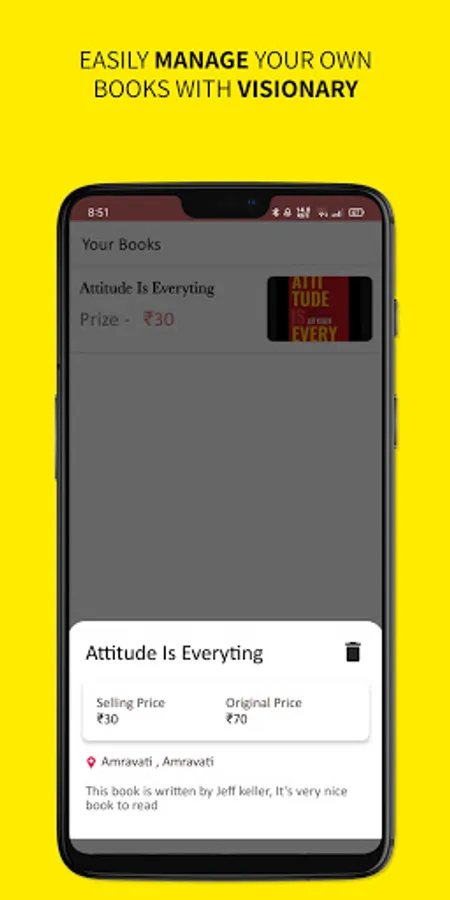 Now Forgot the Headache of finding a buyer for your book because through this app you can Sell your own Used books or Second Hand book a your own prize. this way you fulfil the requirement of Buyer by provide a books he want and also your book will get sold at your prize . you can sold any book ,text book you have and buyer can get recommendation of book if he is in your area if he want to buy a book he will get you contact details and your location so that you can buy or sell you book easily. without much efforts.