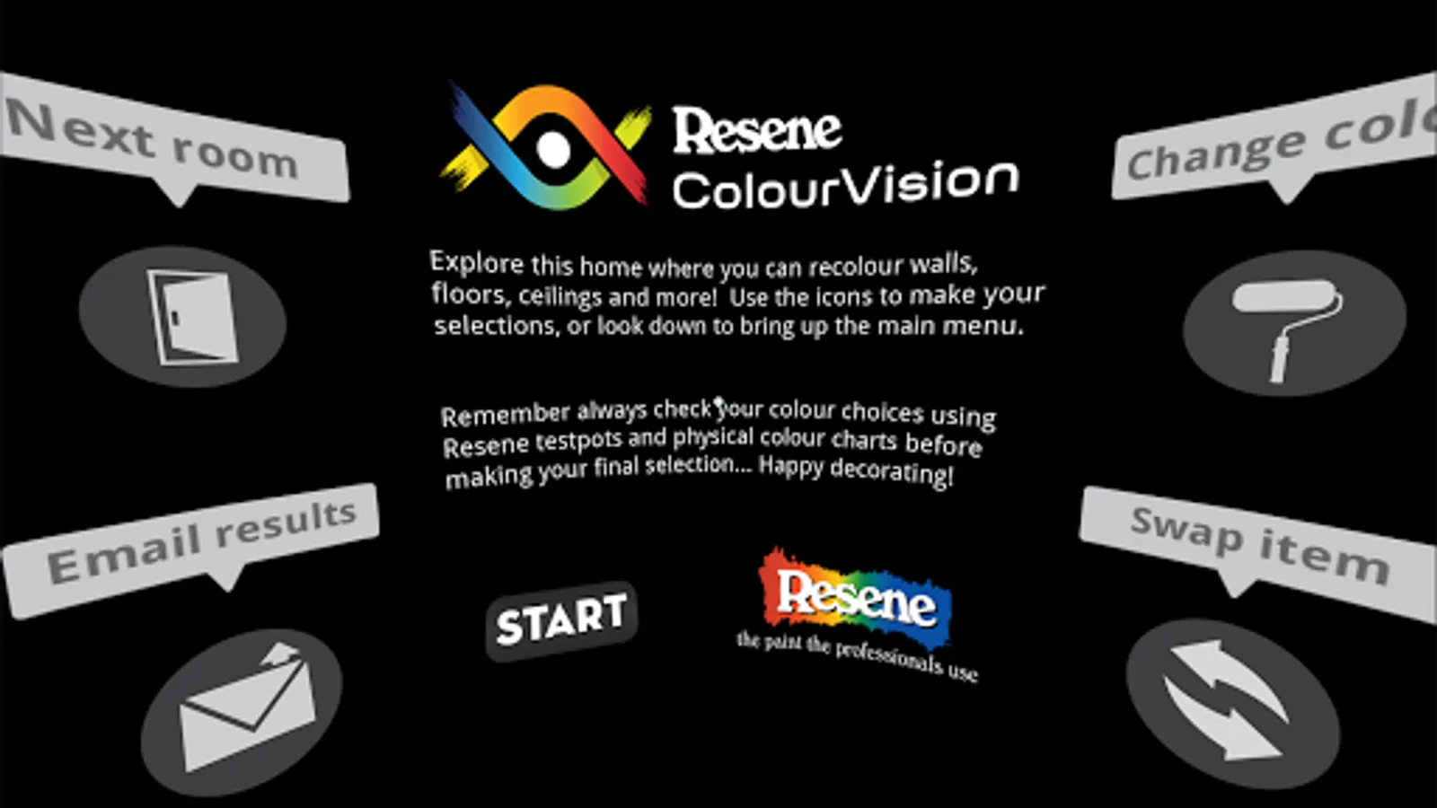 Paint at home in Virtual Reality! With Resene ColourVision you can choose paint colours and try them out in a 3D virtual house, allowing you to easily visualise your colour choices.