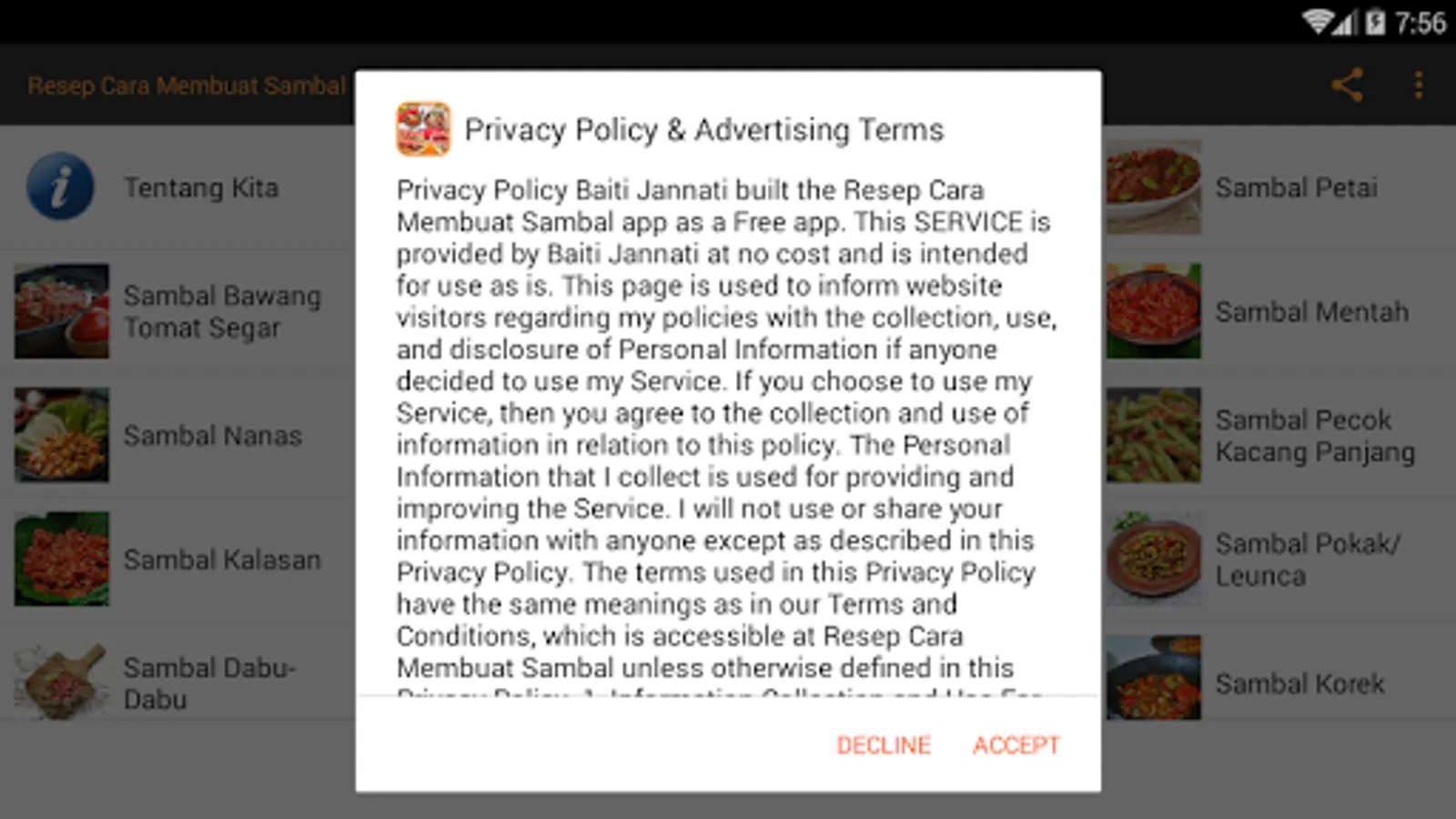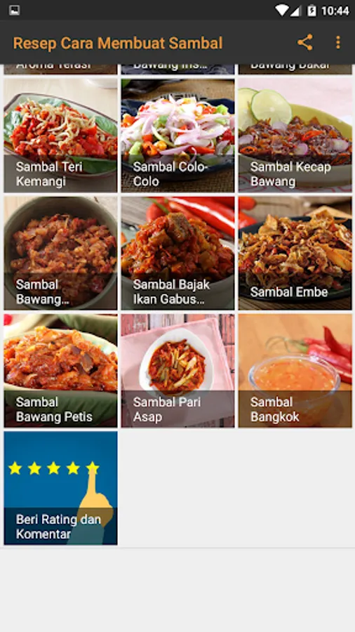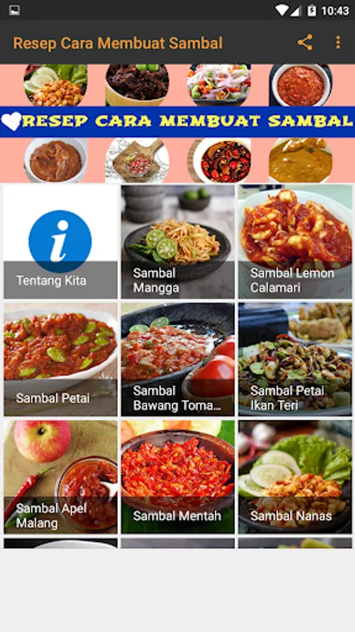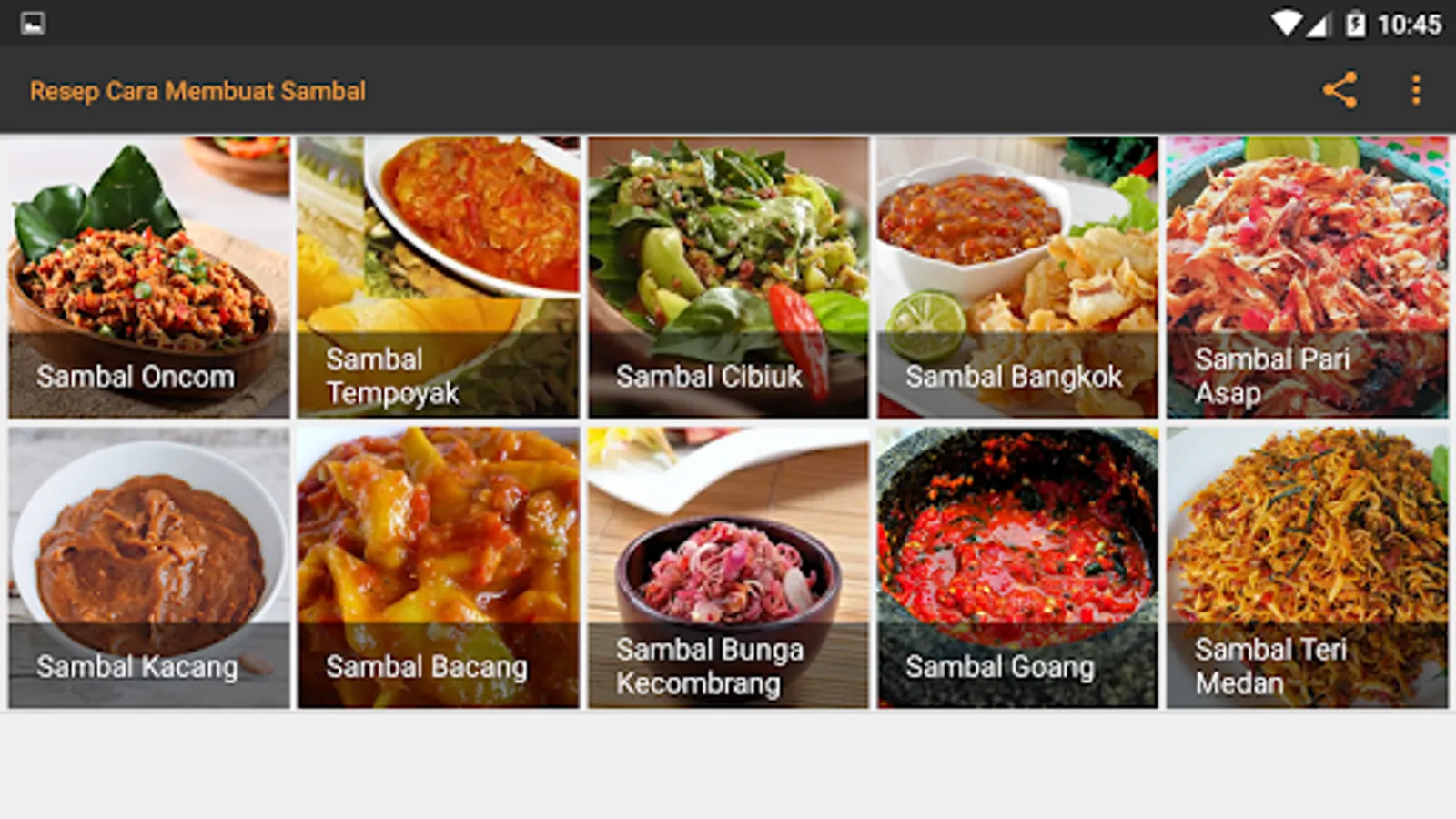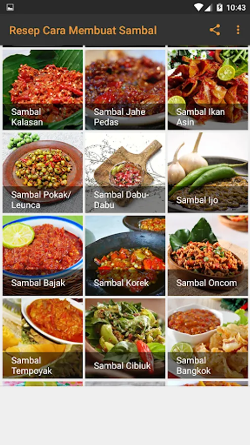 Sambal Recipe application is an application that contains a collection of various Easy and Tasty Sambal Recipes. Recipe How to make complete Sambal is suitable as your reference for making delicious Sambal Menu for your beloved family.
