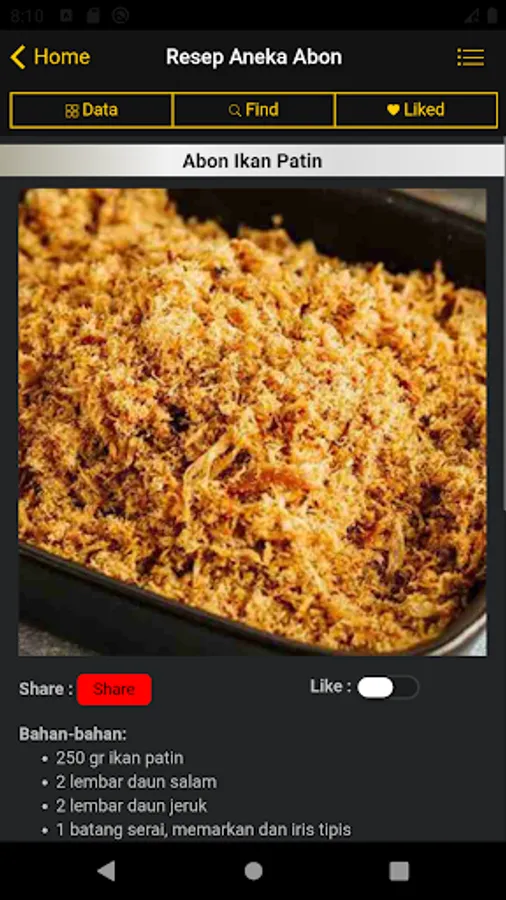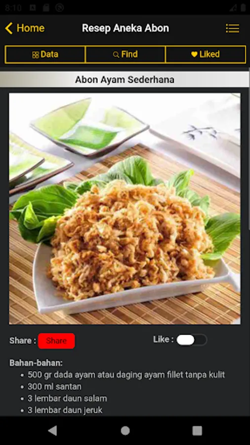 There are many different shredded recipes that you can find in this application, where all the data in this application can be used as a reference when you want to get information about various shredded recipes.