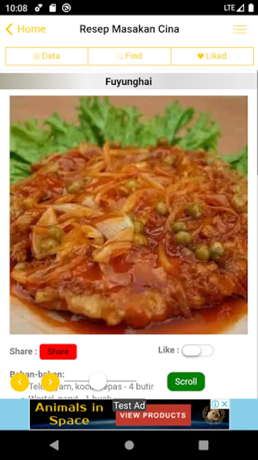 - You can use the like feature if you want to save information on Chinese recipes that you like, so you don't have to search again.