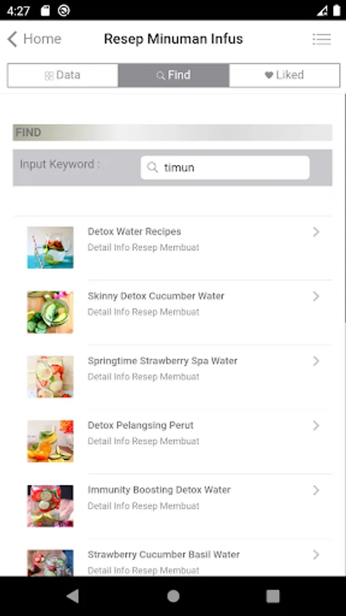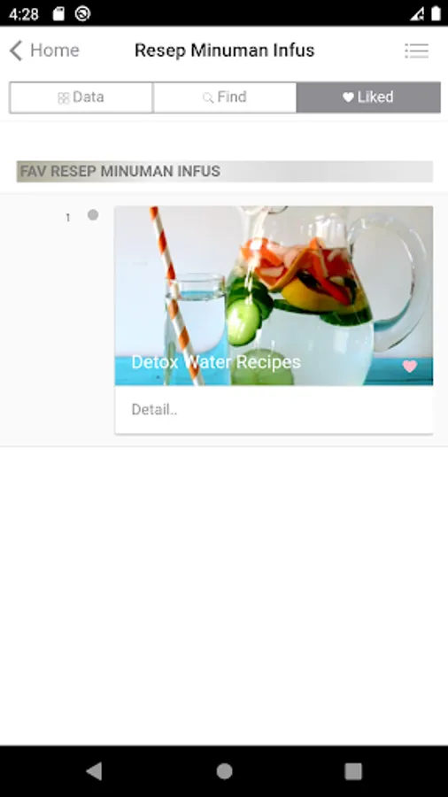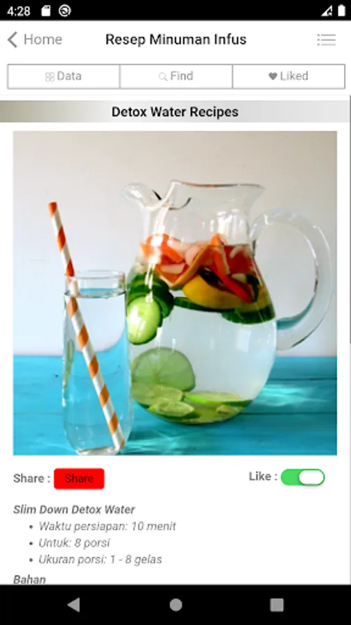 The infusion drink recipe application is an application that provides information about how to cook various kinds of infused drink recipes that are discussed in a simple and easy to understand manner.