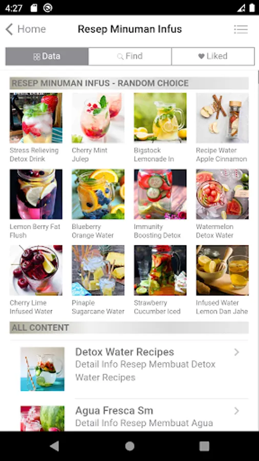 There are many infused drink recipes that you can find in this application, where all the data in this application you can use as a reference when you want to cook various kinds of recipes.