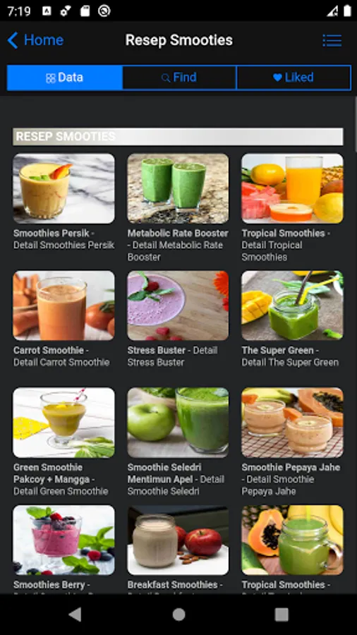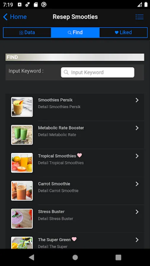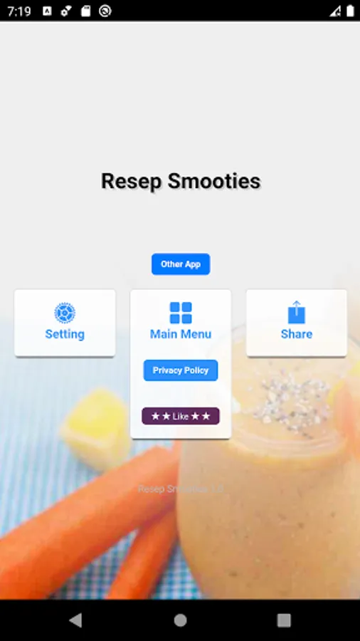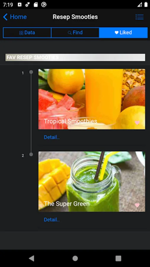 - fitur like bisa anda gunakan jika anda ingin menyimpan informasi resep smooties yang kamu sukai, sehingga kamu tidak perlu mencari lagi.