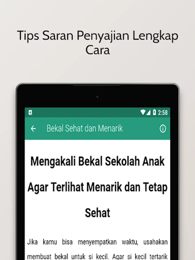 Find a variety of Little Baby Healthy Breakfast Recipes through your Android cellphone easily, Create Recipes for Kids School Menu Recipes for all of you everywhere. Sometimes we have trouble getting the Children's School Supplies Recipe for Creative Young Mothers, Nutrition Fulfilled and No Need to Eat More? The difficulty to get Aneka DIY: Preschool Provision for School Children with Limited Budget at this time? Here we present a collection of delicious and unique school lunch recipes that are an important reference for all of you. Through the application Create a Practical Menu and Completely this for School Supplies for Android besides that it can also be easily used through your Android device respectively.