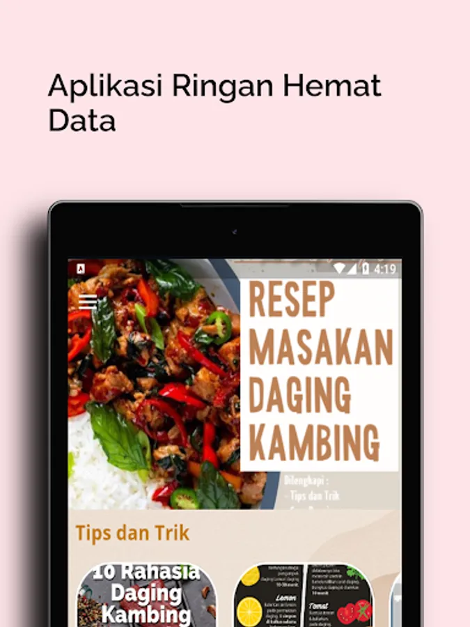 We can get one of the latest applications of Goat Meat Recipes through each of your Android phones easily, a variety of the Most Delicious Goat Meat Recipes for a tasty and simple Eid al-Adha for all of you everywhere. Sometimes we have trouble getting a variety of Must Try! 17 Delicious and Popular and Easy Goat Complete Meat Recipes Try to practice? The difficulty to get an Prepared Recipe for Goat Without Santan, Practical, Easy and Not complicated right now? Here we present the application to be downloaded, which is the Recipe for Processing Delicious Sacrificial Meat which is an important reference for all of you. Through the application of Non-Satay and Gule Goat Meat Recipes that can be easily made to be used through your Android device respectively.