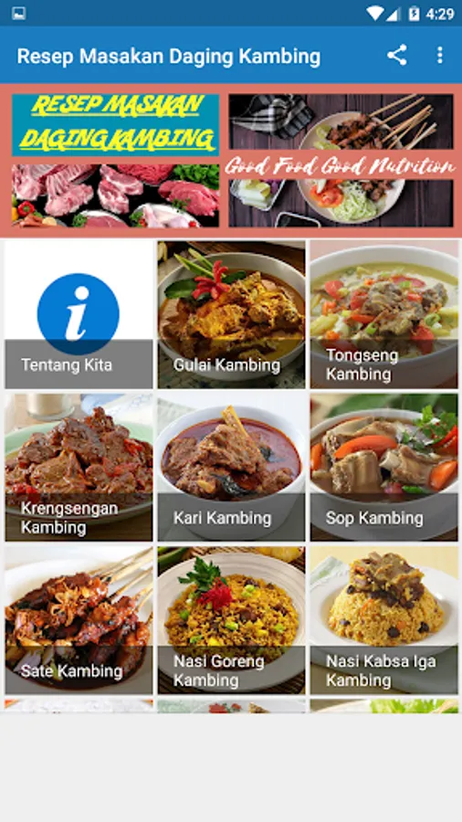 Goat Meat Recipe, Goat Meat Recipe is an application that contains a collection of Various Latest Goat Meat Recipes, Delicious and Easy Goat Meat Recipes, Complete Goat Meat Recipes, Latest Goat Meat Recipes, and also Recipes for Making Goat Meat at home easy and practical, where this application is made to make it easier for all of us to learn and of course is present as one of the references to Processed Goat Meat Recipes which are more Hits for Android. Sometimes we have trouble getting Goat Meat Recipes? Or is it difficult to get a Way to Make Goat Meat at this time? Here is what we present as an Easy Goat Meat Recipe which is an important reference for all of you. Through the application of the collection of processed goat recipes, we can get many variants of processed goat meat. In addition, it can also be easily played through your Android device, which is suitable as your reference for making Goat Meat Cuisine for your beloved family at home.