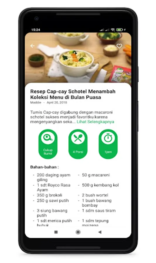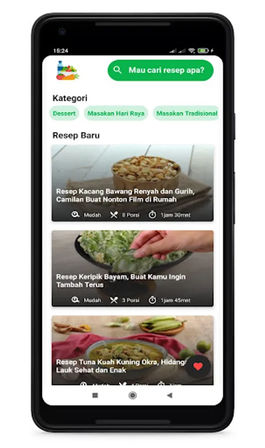 di aplikasi ini tersedia beberapa kategori makanan dan beberapa menu pilihan makanan yang bisa di coba di rumah masing - masing